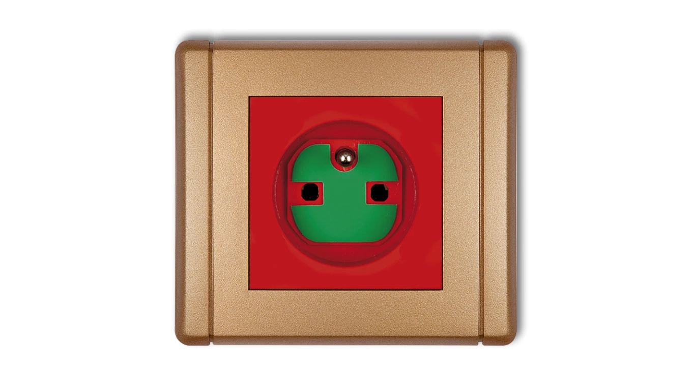 IMPRESJA Gniazdo bryzgoszczelne z/u Schuko IP44 klapka przezroczysta złoty metalik GPH-1YS/m/28/d