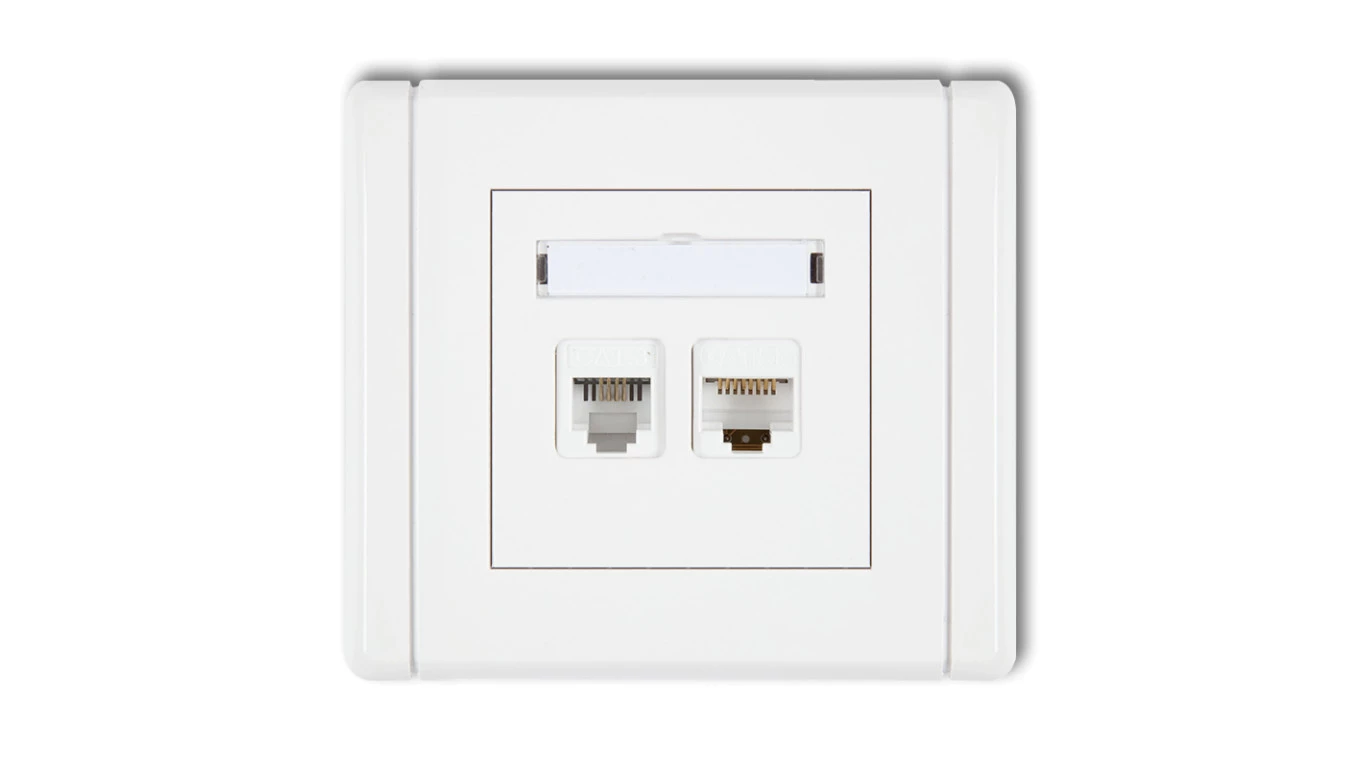 FLEXI Gniazdo telefoniczne pojedyncze 1xRJ11 + komputerowe pojedyncze 1xRJ45, kat. 5e, 8-stykowe, beznarzędziowe biały FGTK