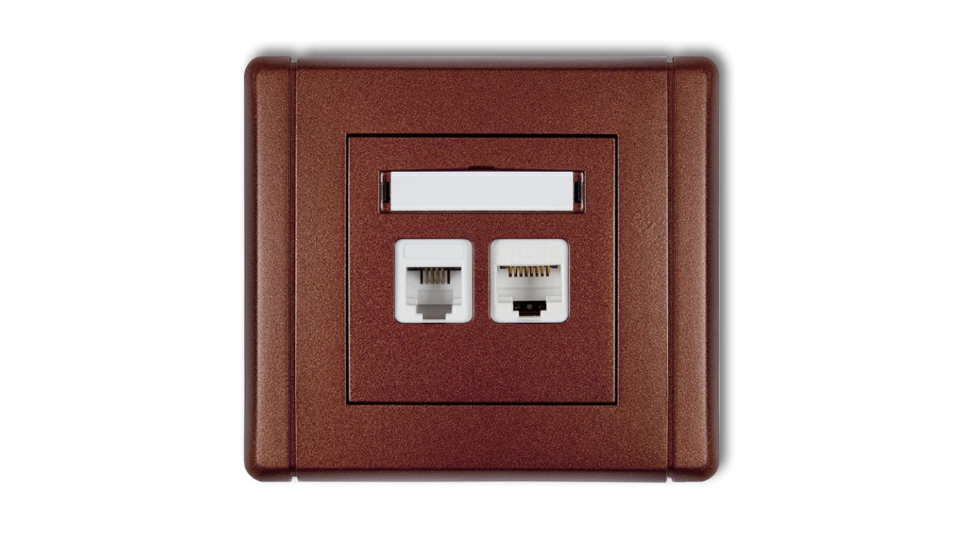 FLEXI Gniazdo telefoniczne pojedyncze 1xRJ11 + komputerowe pojedyncze 1xRJ45, kat. 5e, 8-stykowe, beznarzędziowe brązowy metalik