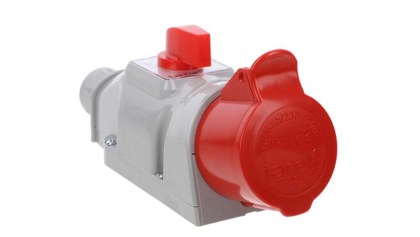 Gniazdo naścienne z rozłącznikiem 16A 7p 6h 400V IP67 z podwójną blokadą mechaniczną MEN5785