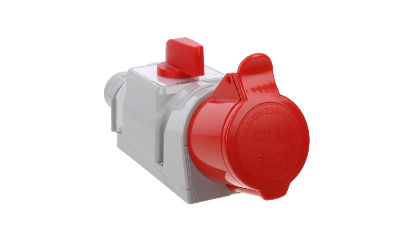 Gniazdo naścienne z rozłącznikiem 32A 3p 6h 230V IP67 z podwójną blokadą mechaniczną MEN5793A