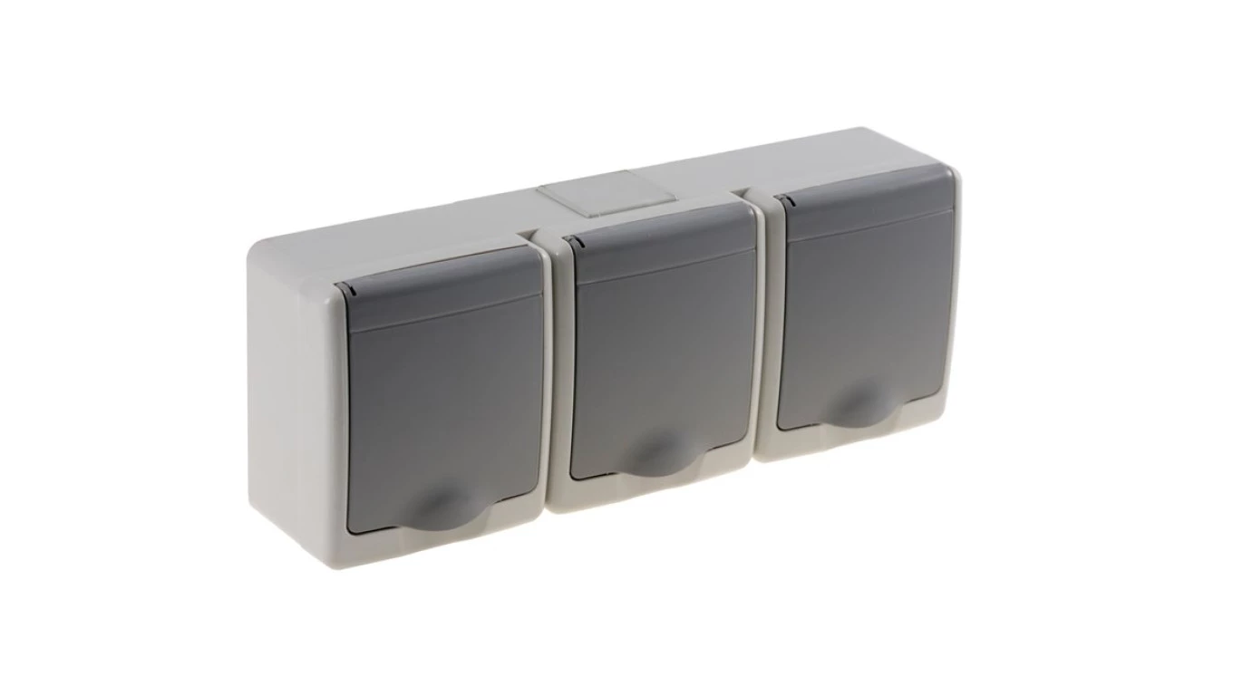 Gniazdo BETA1, potrójne, 3xP+Z, IP44, dymne, ob.szara* D.3614GGG/1