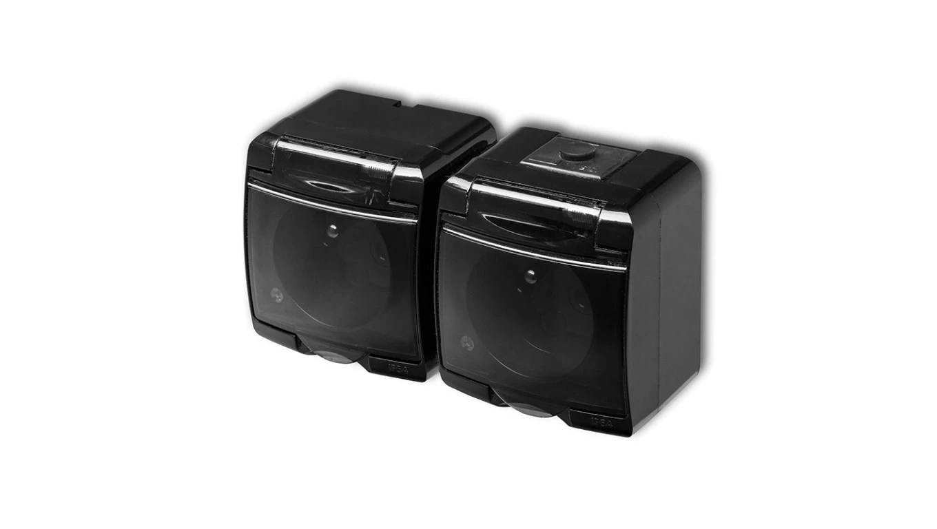 Gniazdo hermetyczne podwójne z uziemieniem Karlik Junior 12GHE-2D (klapka dymna) 2x(2P+Z) bez przesłon czarne