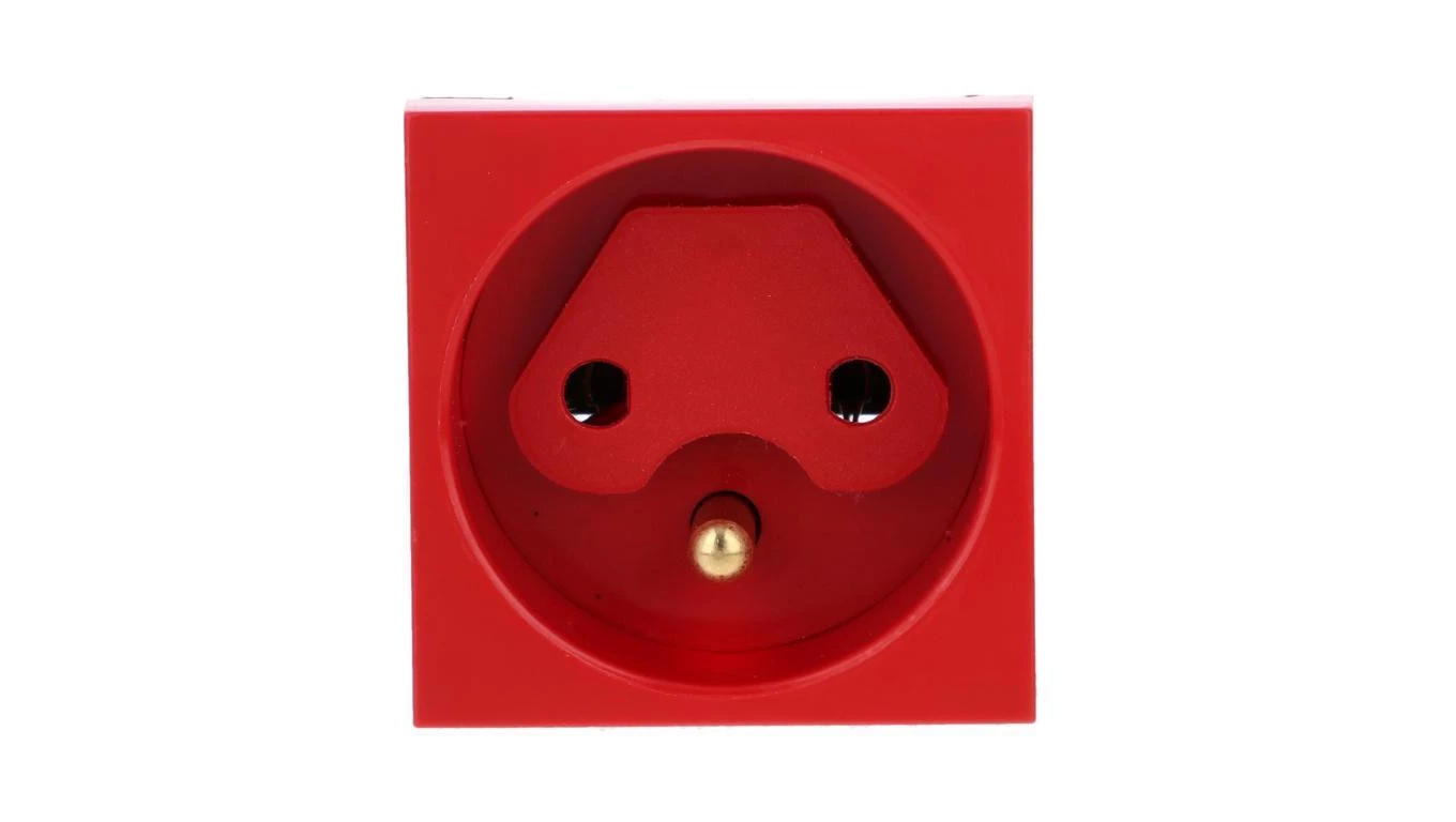 Gniazdo pojedyncze 250VAC 16A z/u z kluczem czerwone 45x45mm, QP 45X45 D_BB