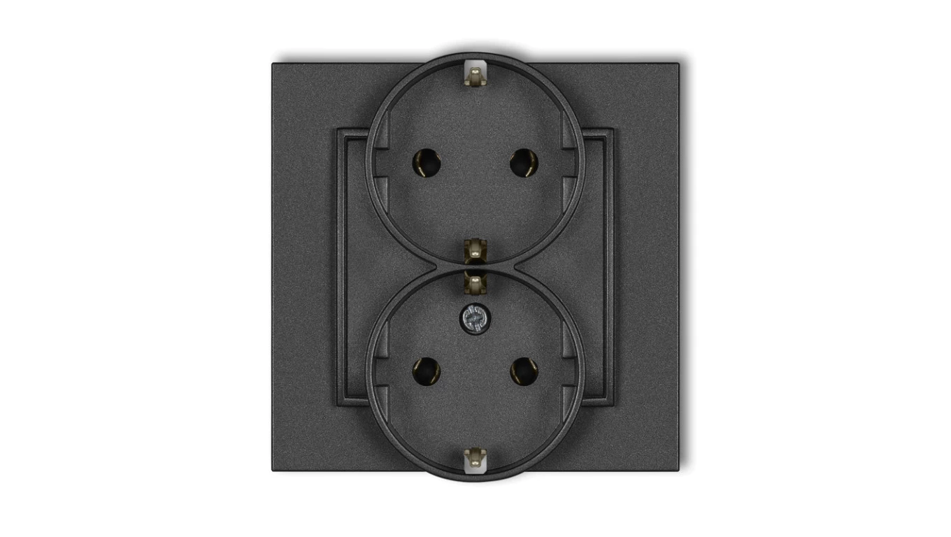 MINI Gniazdo podwójne b/u z przesłonami grafitowy 11MGPR-2p
