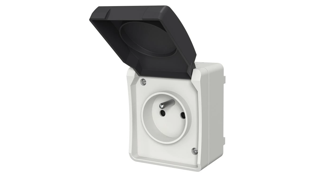 Gniazdo pojedyncze z uziemieniem natynkowe z klapką Aqua Plus IP54 szaro grafitowe 40114