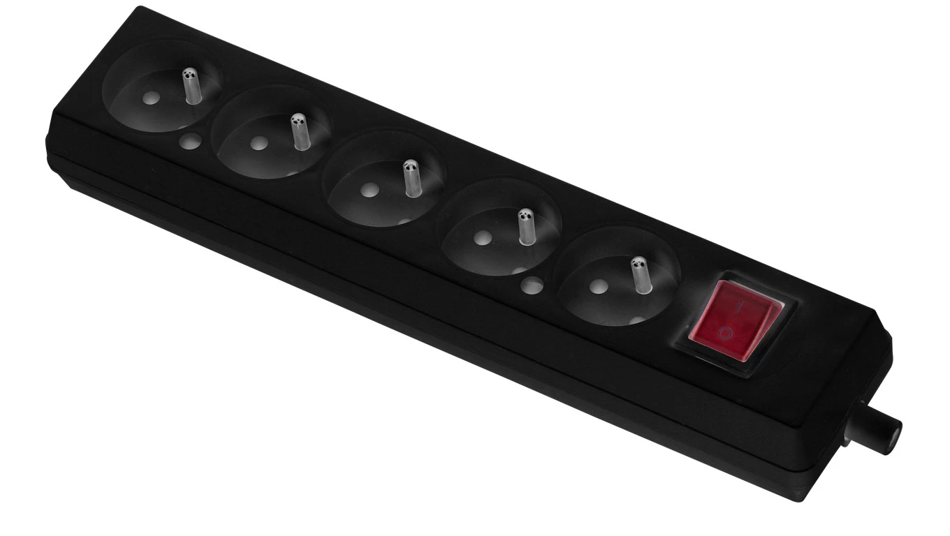 Gniazdo przenośne pięciokrotne 16A 2P+Z 250V z wyłącznikiem czarne GN-570WS