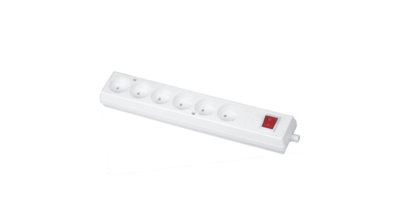 Gniazdo przenośne sześciokrotne 16A 2P 250V z wyłącznikiem białe GN-660WS
