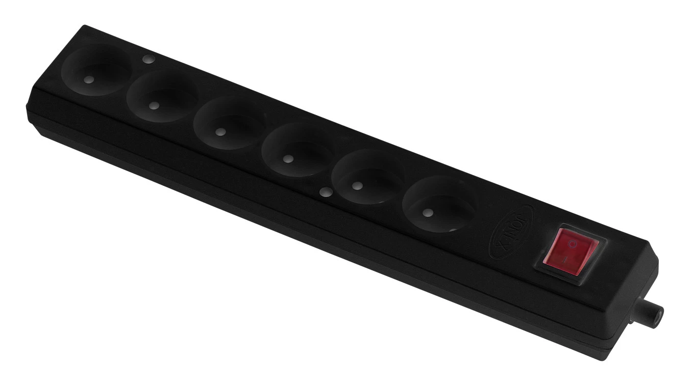 Gniazdo przenośne sześciokrotne 16A 2P 250V z wyłącznikiem czarne GN-660WS