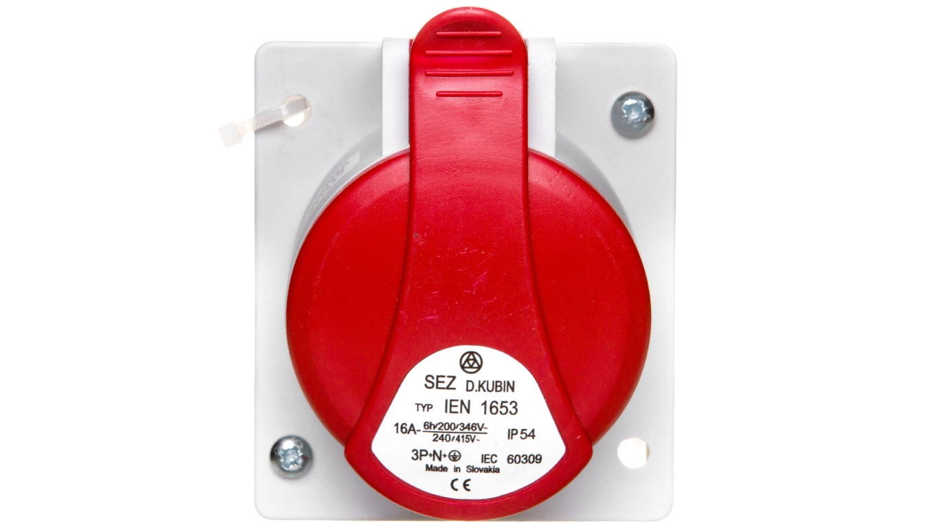 Gniazdo tablicowe skośne 5P 16A 400V czerwone podtynkowe z puszką IP44 GTPN 1653