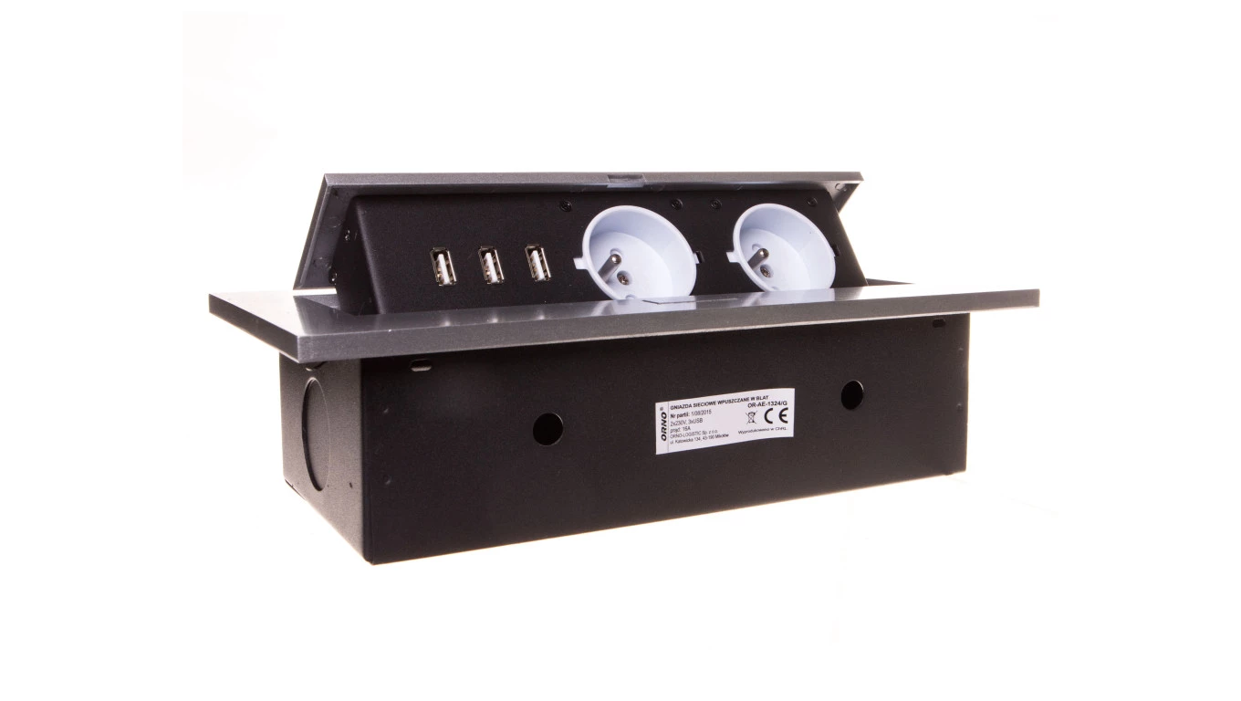 Gniazdo wpuszczane w blat 3xUSB 2x230V AC srebrne OR-AE-1324/G