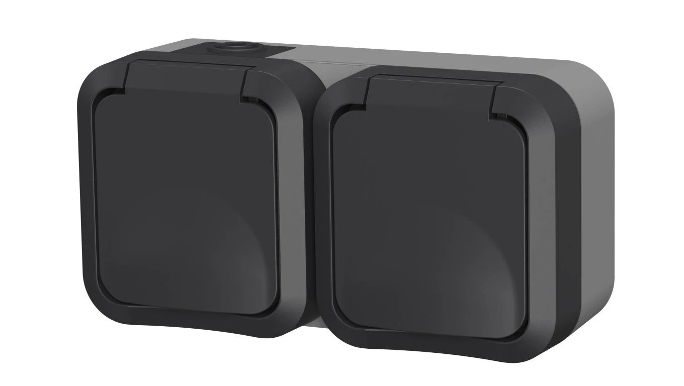 Gniazdo z uziemieniem podwójne natynkowe Aqua Pro IP55 szaro grafitowe 60325