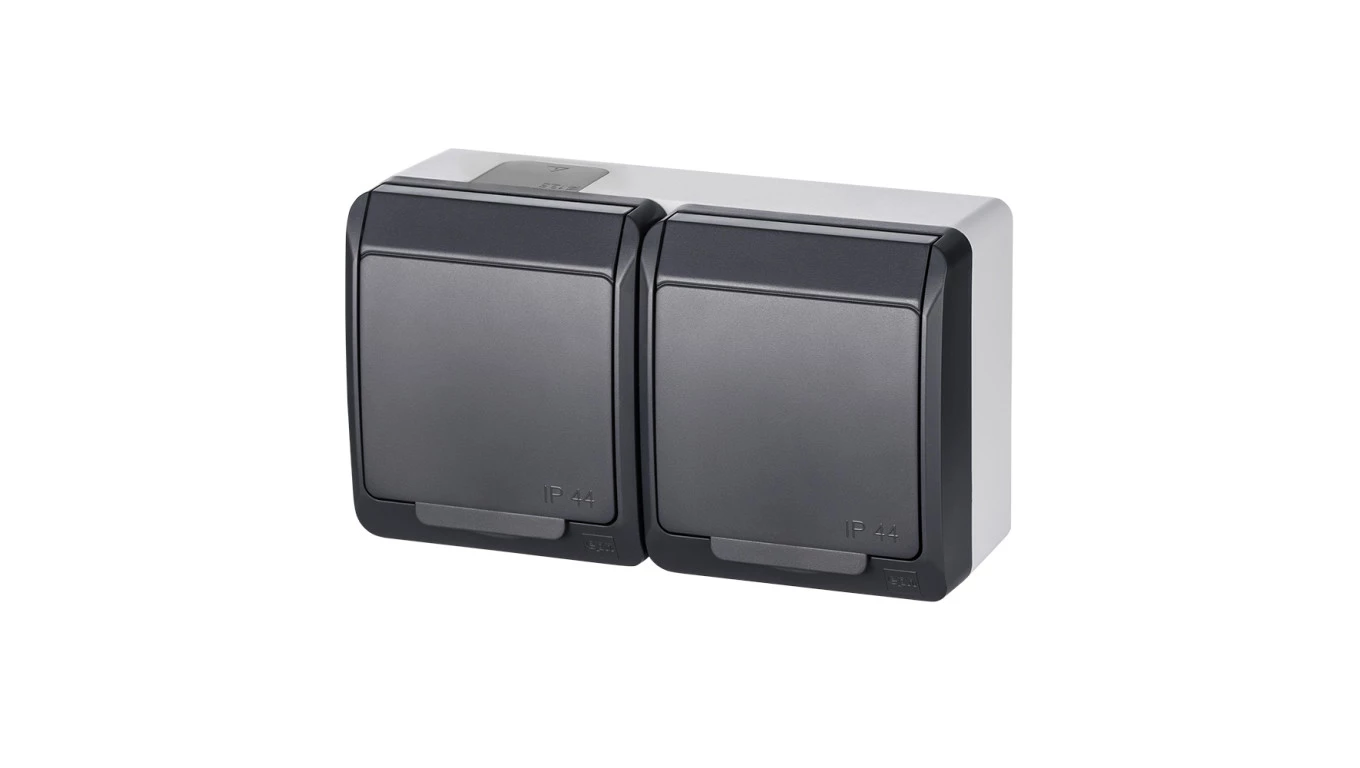 Hermes Gniazdo hermetyczne podwójne natynkowe z uziemieniem 16A IP44 antracyt 0322-07