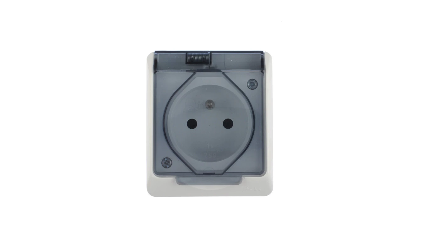 Hermes Gniazdo hermetyczne pojedyncze natynkowe z uziemieniem 16A IP44 z klapką dymną białe GNT 0321-01