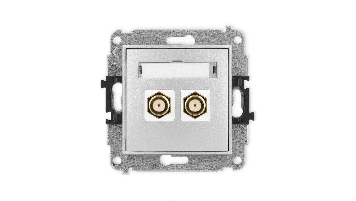 ICON Mechanizm gniazda antenowego podwójnego typu F (SAT) pozłacany srebrny metalik 7IGF-2.1