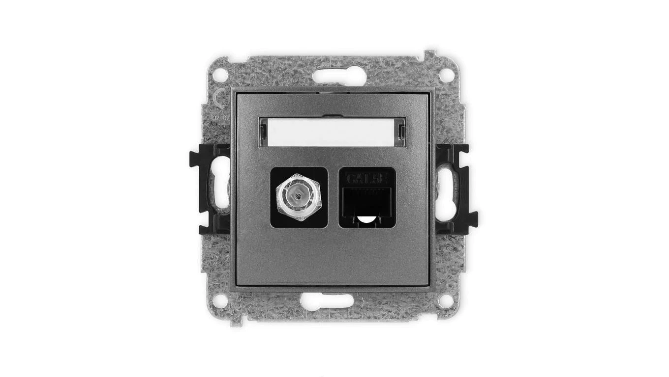 ICON Mechanizm gniazda antenowego poj. typu F (SAT) + gniazda komp. poj. 1xRJ45, kat. 5e, 8-stykowy grafitowy 11IGFK-1