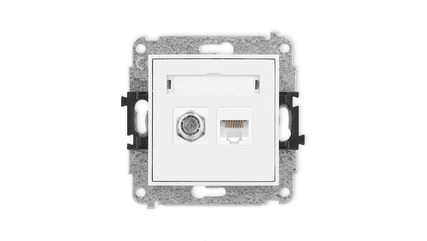 ICON Mechanizm gniazda antenowego poj. typu F (SAT) + gniazda komp. poj. 1xRJ45, kat. 5e, 8-stykowy biały mat 25IGFK-1