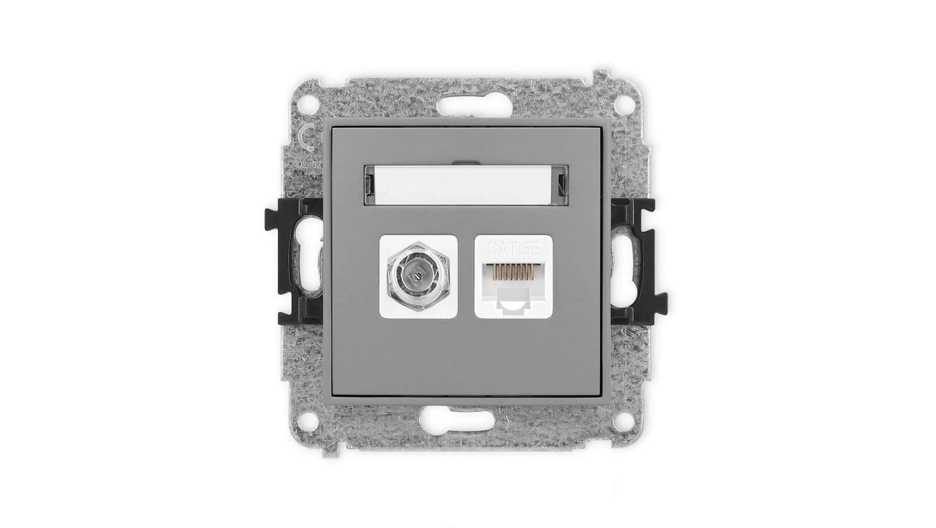 ICON Mechanizm gniazda antenowego poj. typu F (SAT) + gniazda komp. poj. 1xRJ45, kat. 5e, 8-stykowy szary mat 27IGFK-1