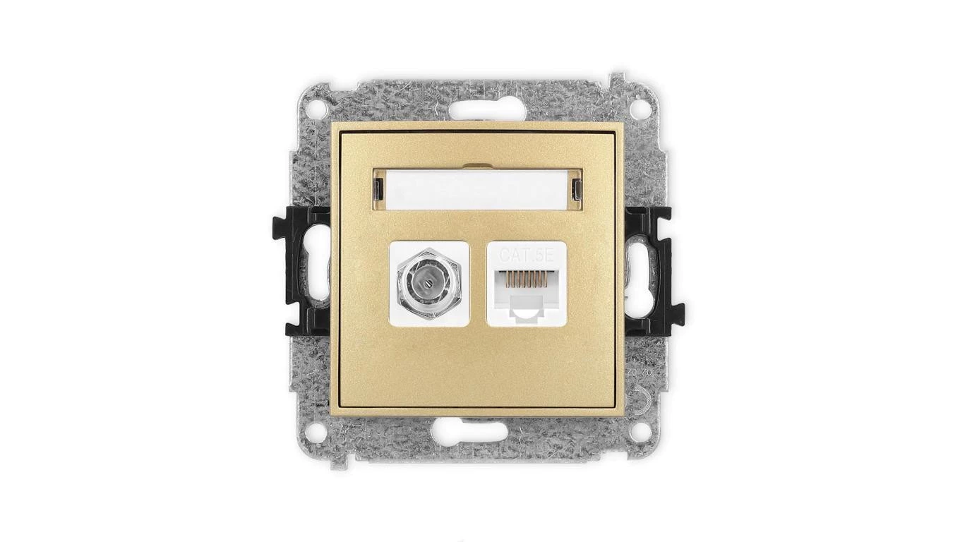 ICON Mechanizm gniazda antenowego poj. typu F (SAT) + gniazda komp. poj. 1xRJ45, kat. 5e, 8-stykowy złoty 29IGFK-1