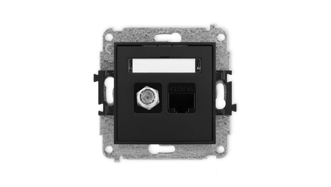 ICON Mechanizm gniazda antenowego poj. typu F (SAT) + gniazda komp. poj. 1xRJ45, kat. 6, 8-stykowy czarny mat 12IGFK-3