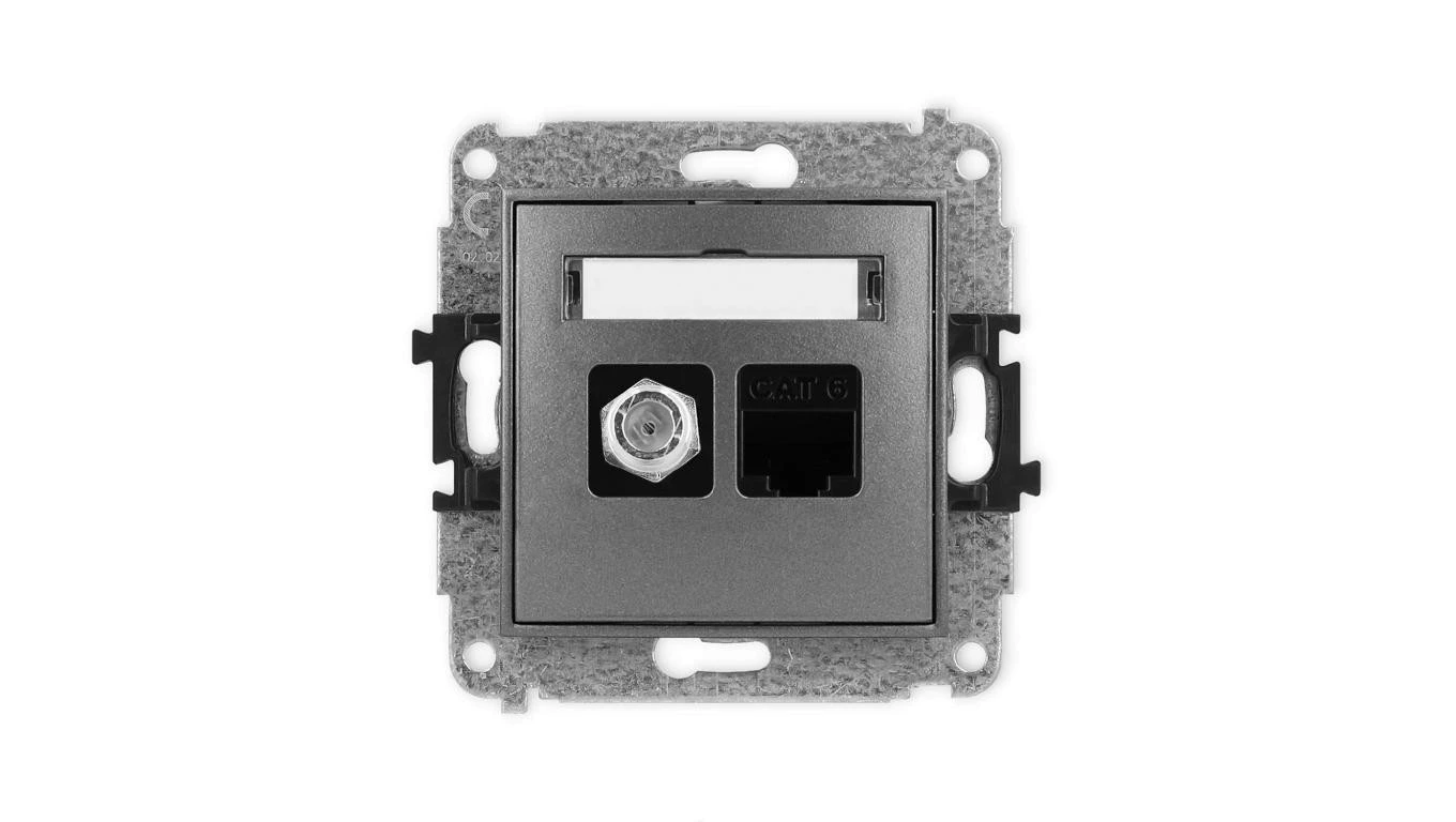 ICON Mechanizm gniazda antenowego poj. typu F (SAT) + gniazda komp. poj. 1xRJ45, kat. 6, 8-stykowy grafitowy 11IGFK-3