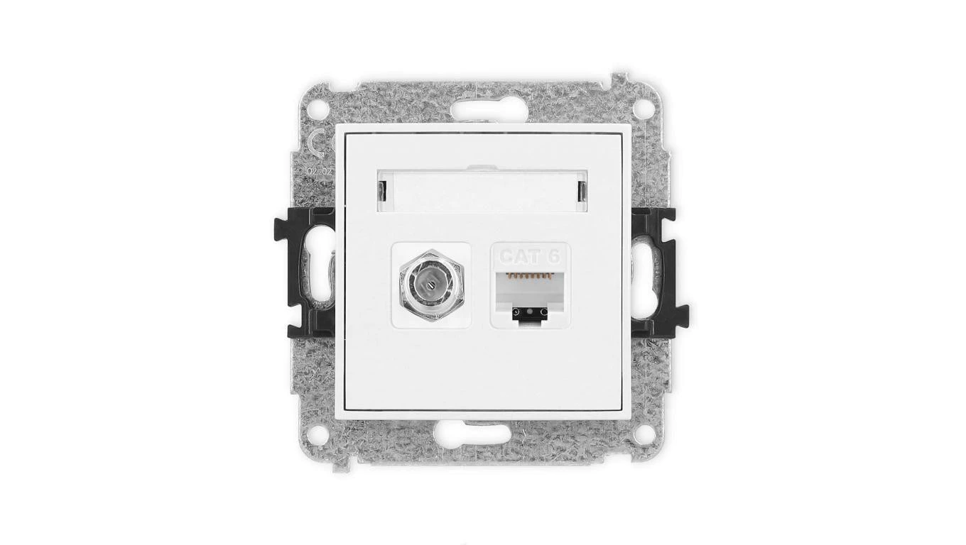 ICON Mechanizm gniazda antenowego poj. typu F (SAT) + gniazda komp. poj. 1xRJ45, kat. 6, 8-stykowy biały mat 25IGFK-3