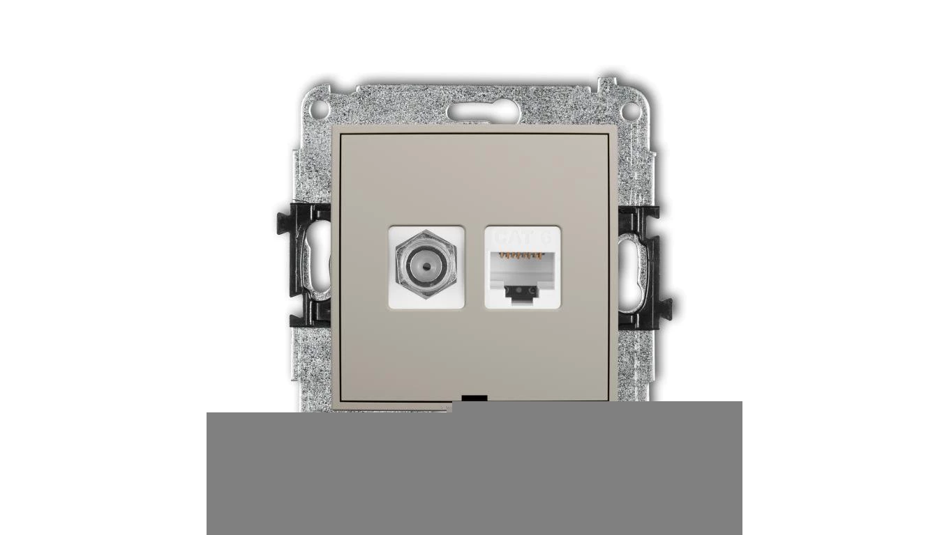 ICON Mechanizm gniazda antenowego poj. typu F (SAT) + gniazda komp. poj. 1xRJ45, kat. 6, 8-stykowy, bez opisu taupe 60IGFKBO-3