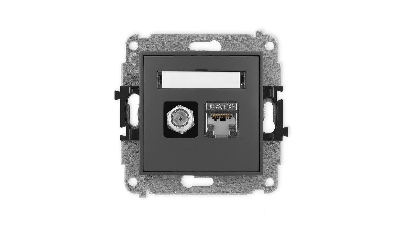 ICON Mechanizm gniazda antenowego poj. typu F (SAT) + gniazda komp. poj. 1xRJ45 kat. 6 ekranowane, 8-styk grafitowy mat 28IGFK-5
