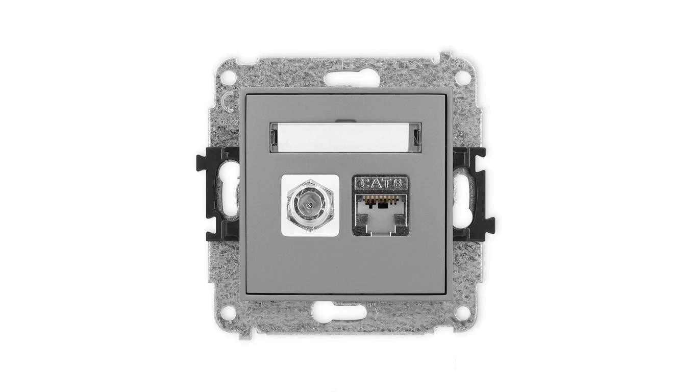 ICON Mechanizm gniazda antenowego poj. typu F (SAT) + gniazda komp. poj. 1xRJ45, kat. 6 ekranowane, 8-stykowy szary mat 27IGFK-5