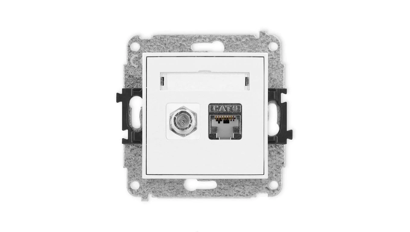 ICON Mechanizm gniazda antenowego poj. typu F (SAT) + gniazda komp. poj. 1xRJ45, kat. 6 ekranowane, 8-stykowy biały IGFK-5