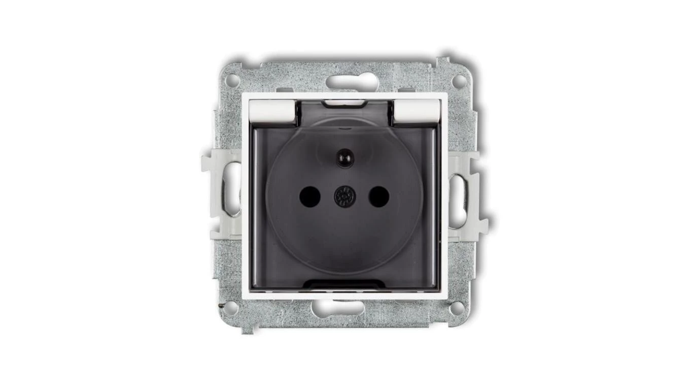ICON Mechanizm gniazda bryzgoszczelnego z uziemieniem 2P+Z (klapka dymna, przesłony torów prądowych) biały mat 25IGPB-1zdp