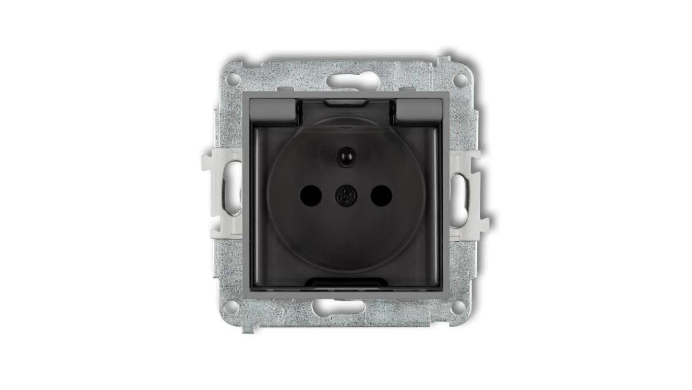 ICON Mechanizm gniazda bryzgoszczelnego z uziemieniem 2P+Z (klapka dymna, przesłony torów prądowych) szary mat 27IGPB-1zdp