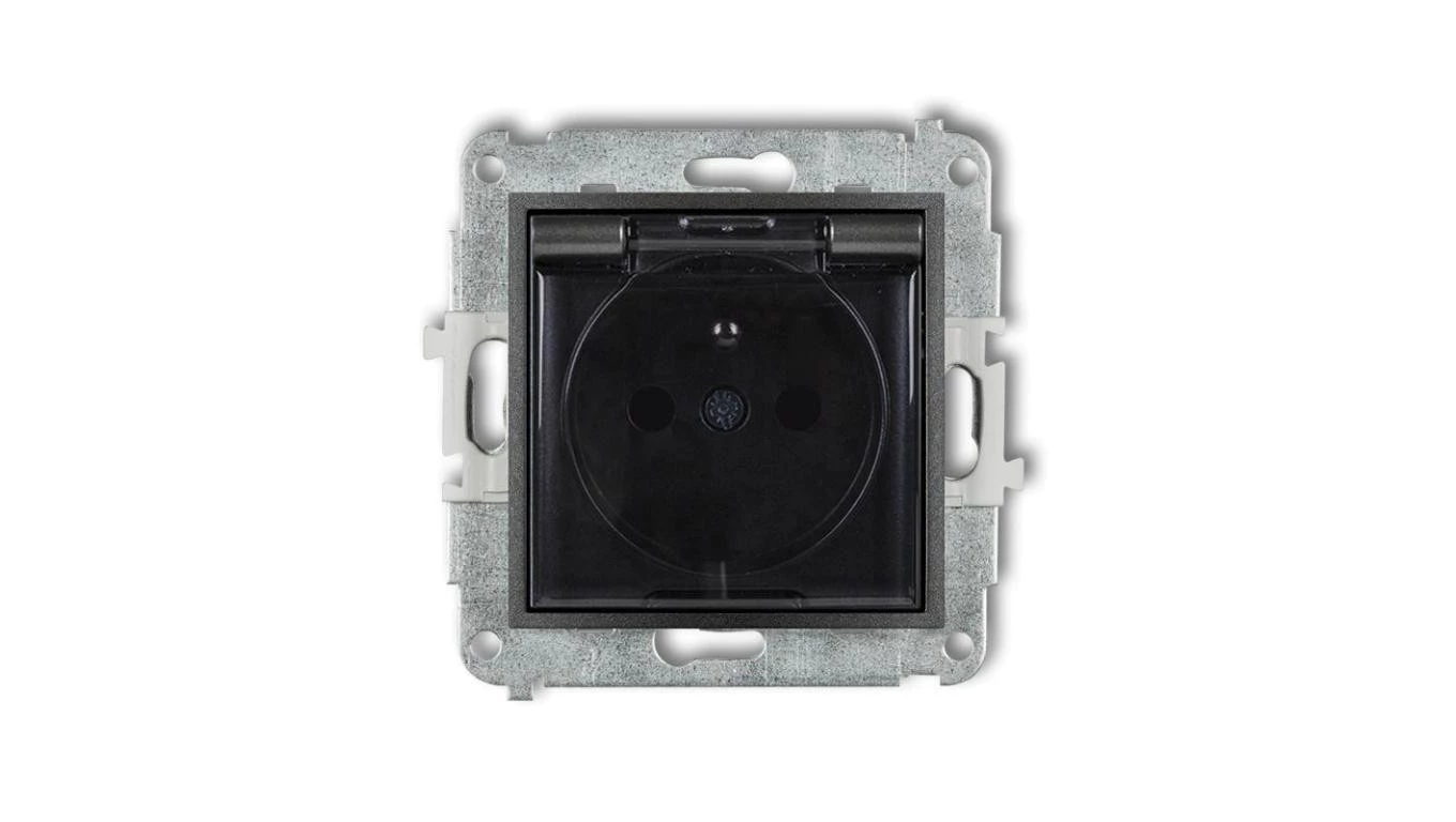ICON Mechanizm gniazda bryzgoszczelnego z uziemieniem 2P+Z (klapka dymna, przesłony torów prądowych) grafitowy 11IGPB-1zdp