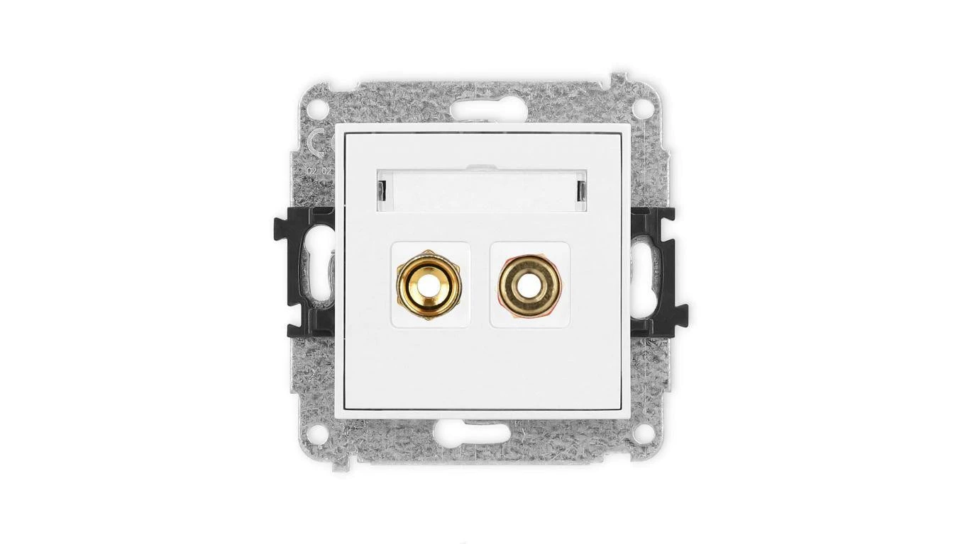 ICON Mechanizm gniazda głośnikowego pojedynczego (typu banan - czerwony i czarny, pozłacany, 4 mm2, skręcany) biały mat 25IGG-4