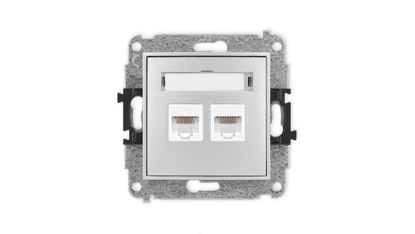 ICON Mechanizm gniazda komputerowego podwójnego 2xRJ45, kat. 5e, 8-stykowy srebrny metalik 7IGK-2