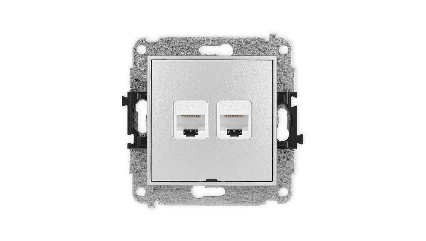 DECO Gniazdo komputerowe podwójny 2xRJ45, kat. 6, 8-stykowy szary mat 27DGK-4