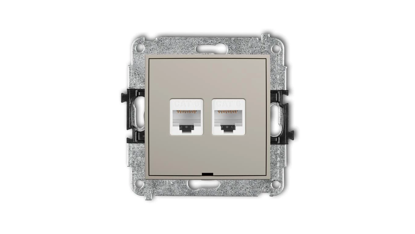 ICON Mechanizm gniazda komputerowego podwójnego 2xRJ45, kat. 6, 8-stykowy, bez pola opisowego taupe 60IGKBO-4