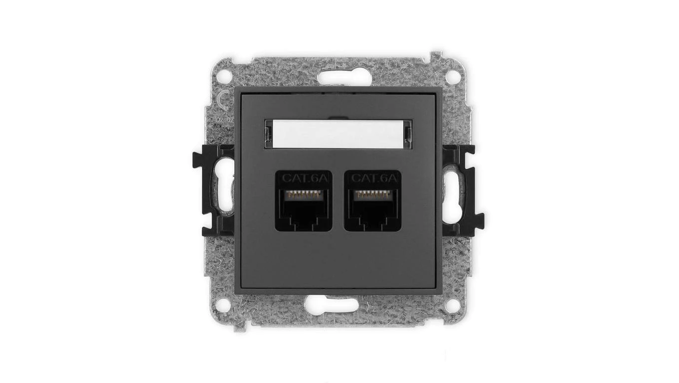 ICON Mechanizm gniazda komputerowego podwójnego 2xRJ45, kat. 6A, 8-stykowy grafitowy mat 28IGK-8