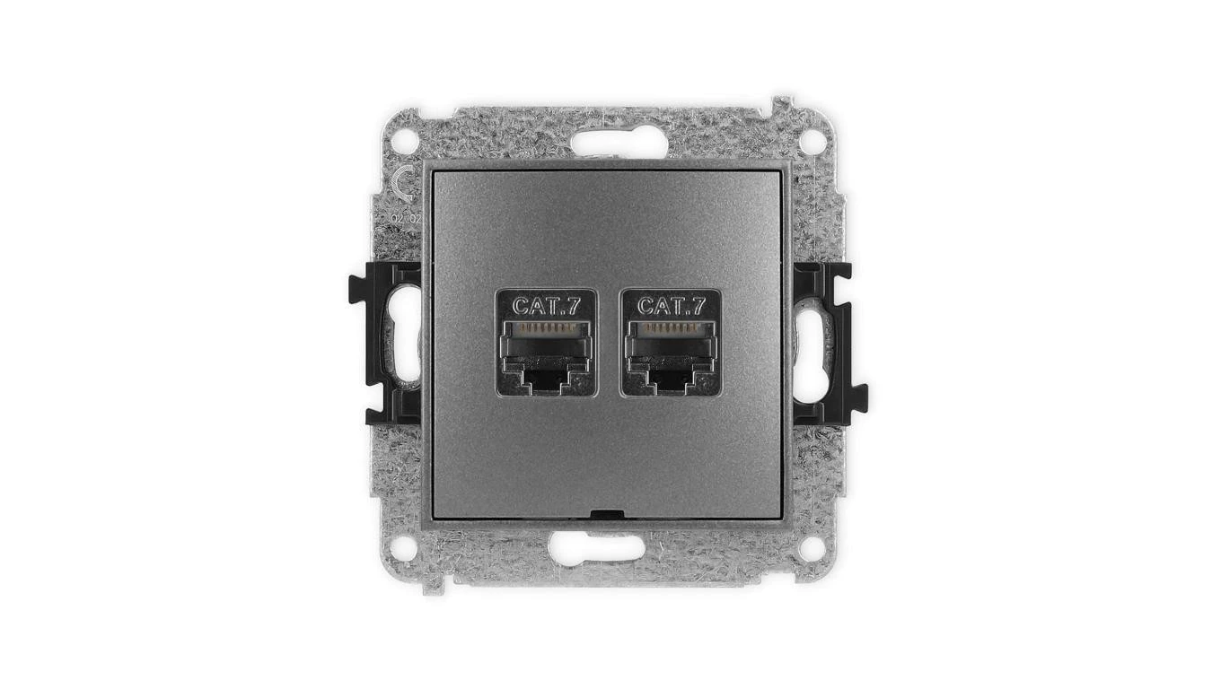 ICON Mechanizm gniazda komputerowego podwójnego 2xRJ45, kat. 7, ekranowane, 8-stykowy, bez pola opisowego grafitowy 11IGKBO-10
