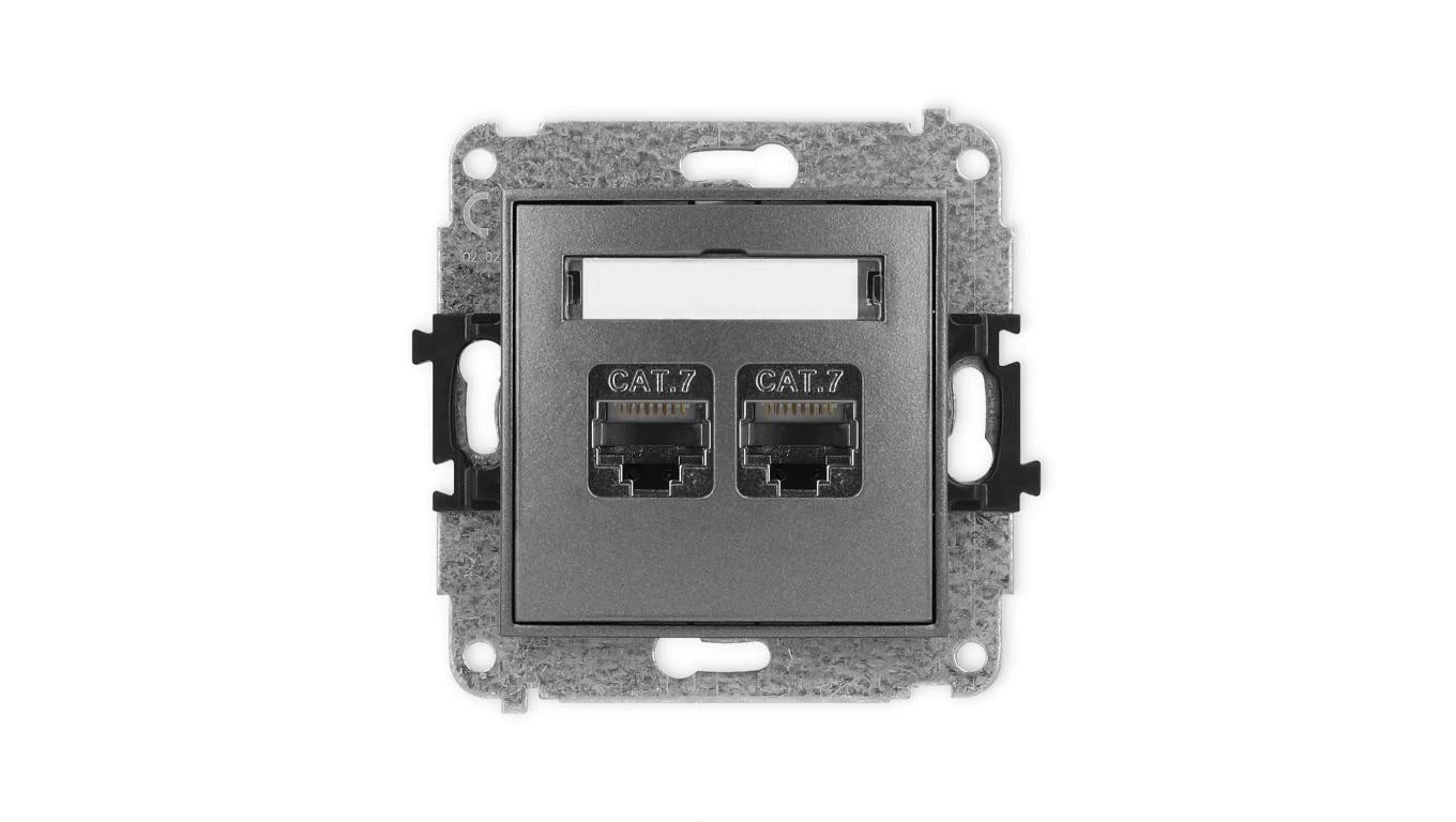 ICON Mechanizm gniazda komputerowego podwójnego 2xRJ45, kat. 7, ekranowane, 8-stykowy grafitowy 11IGK-10