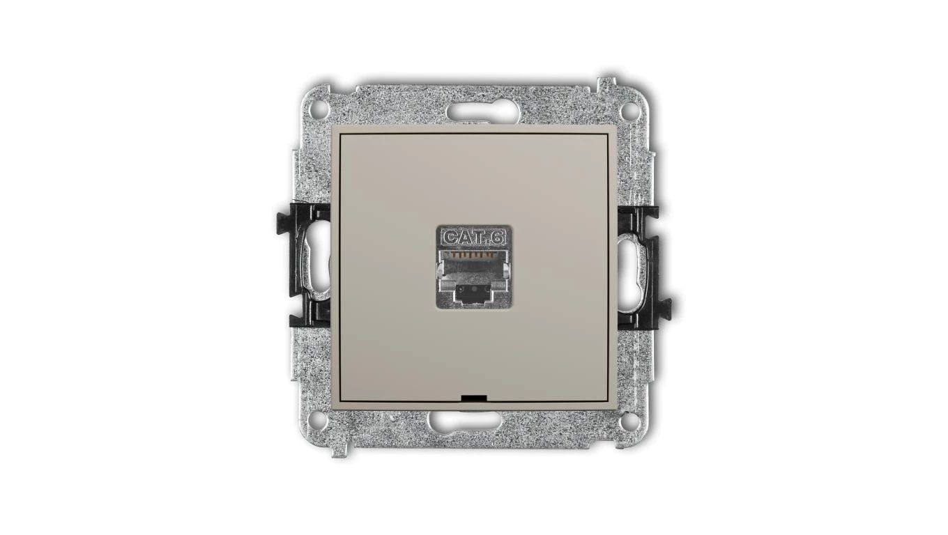 ICON Mechanizm gniazda komputerowego pojedynczego 1xRJ45, kat. 5e, ekranowany, 8-stykowy, bez pola opisowego taupe 60IGKBO-1e