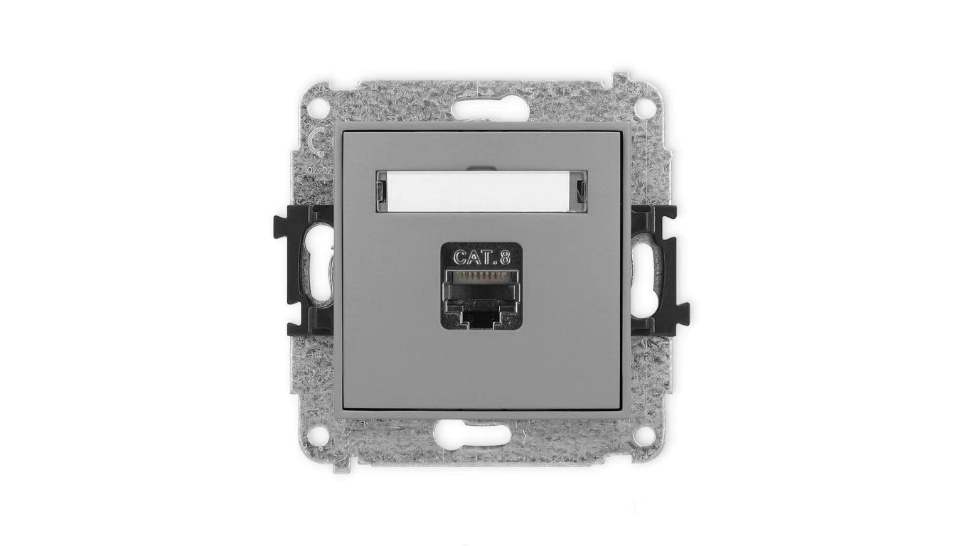 ICON Mechanizm gniazda komputerowego pojedynczego 1xRJ45, kat. 8, ekranowane, 8-stykowy szary mat 27IGK-11