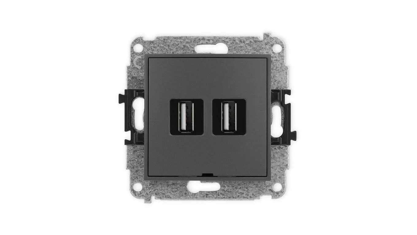 ICON Mechanizm gniazda podwójnego 2xUSB A-A 2.0, bez pola opisowego grafitowy mat 28IGUSBBO-2