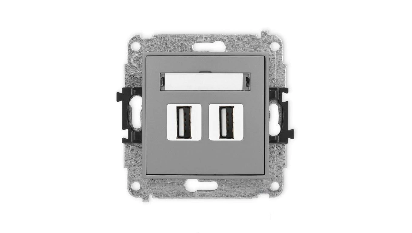 ICON Mechanizm gniazda podwójnego 2xUSB A-A 2.0 szary mat 27IGUSB-2