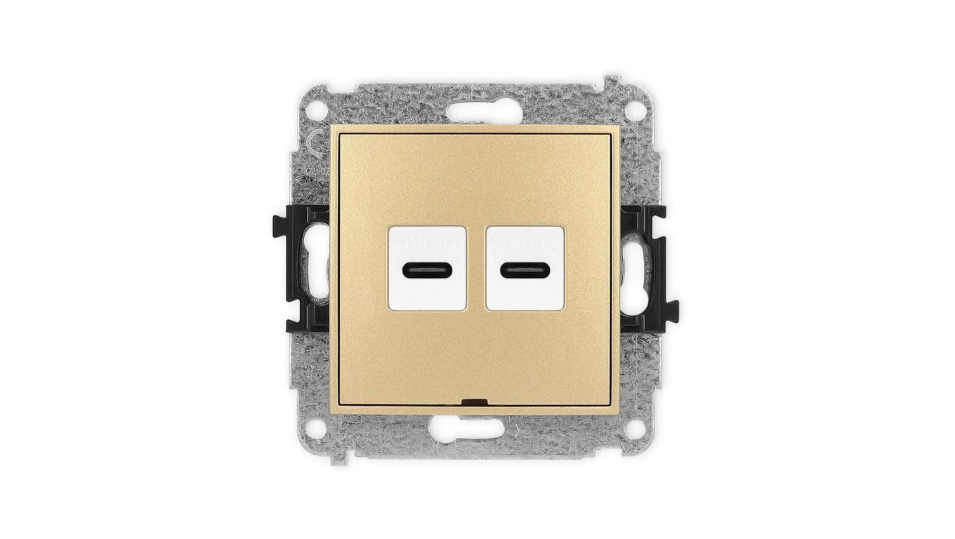 ICON Mechanizm gniazda podwójnego 2xUSB C-C, bez pola opisowego złoty 29IGUSBBO-8