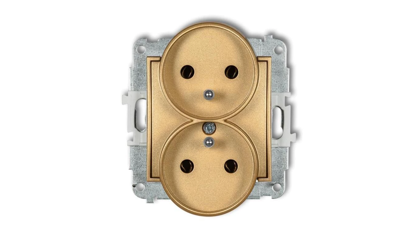 ICON Mechanizm gniazda podwójnego do ramki z uziemieniem 2x(2P+Z) (bez przesłon torów prądowych) złoty 29IGPR-2z