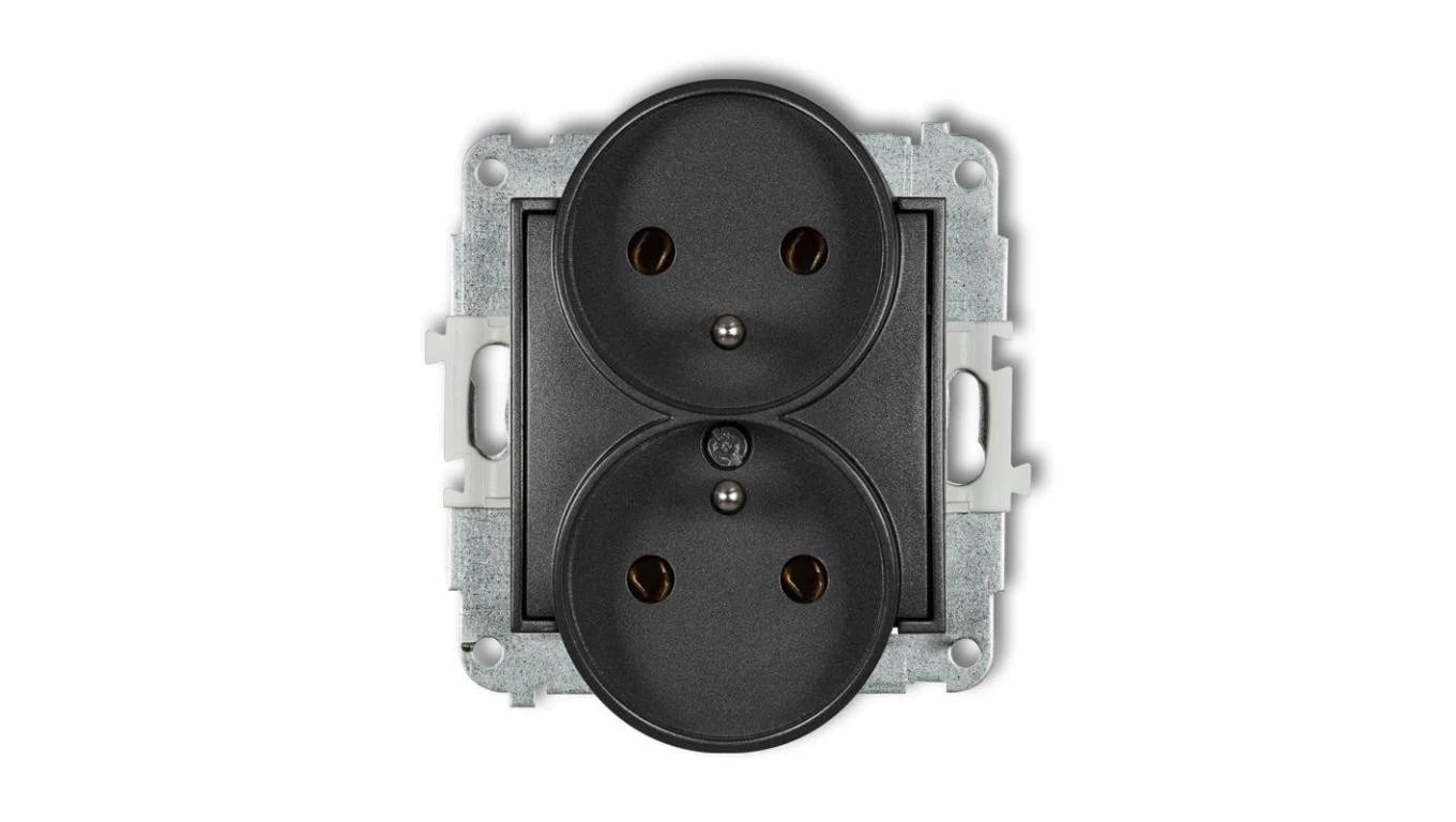 ICON Mechanizm gniazda podwójnego do ramki bez uziemienia 2x2P (bez przesłon torów prądowych) grafitowy 11IGPR-2