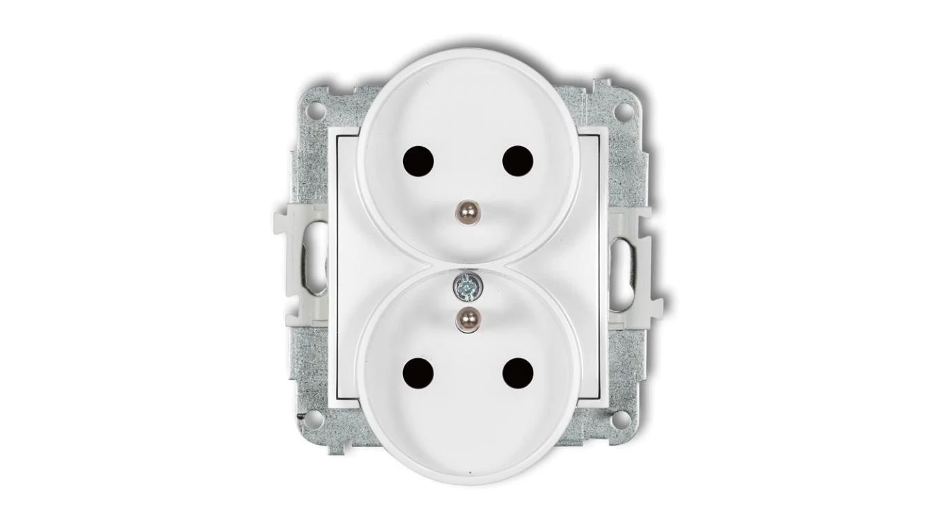 ICON Mechanizm gniazda podwójnego do ramki z uziemieniem 2x(2P+Z) (przesłony torów prądowych) biały mat 25IGPR-2zp