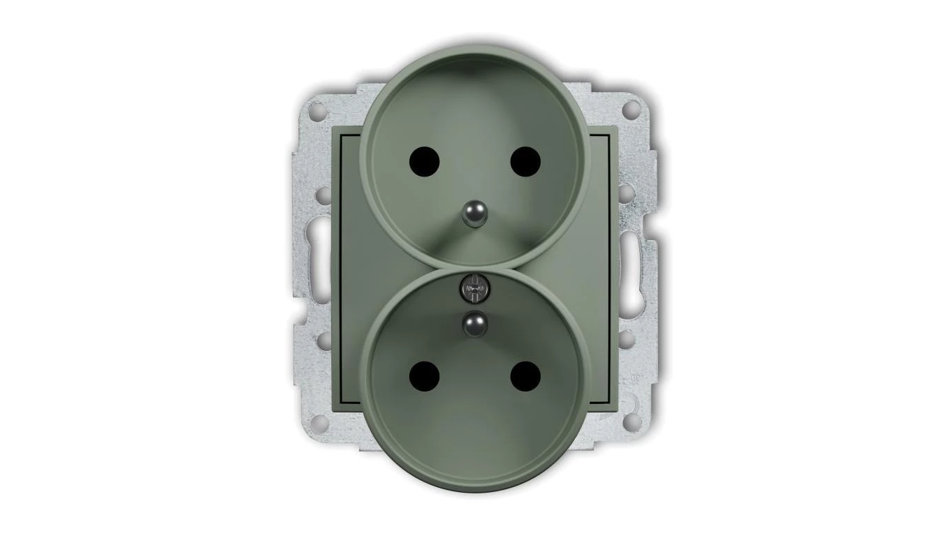 ICON Mechanizm gniazda podwójnego do ramki z uziemieniem 2x(2P+Z) (przesłony torów prądowych) szałwiowy 61IGPR-2zp