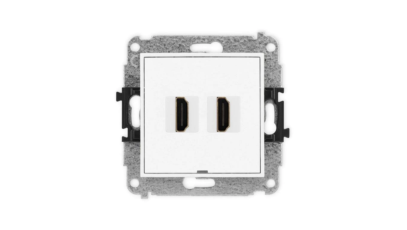 ICON Mechanizm gniazda podwójnego HDMI 2.0, bez pola opisowego biały mat 25IHDMIBO-4